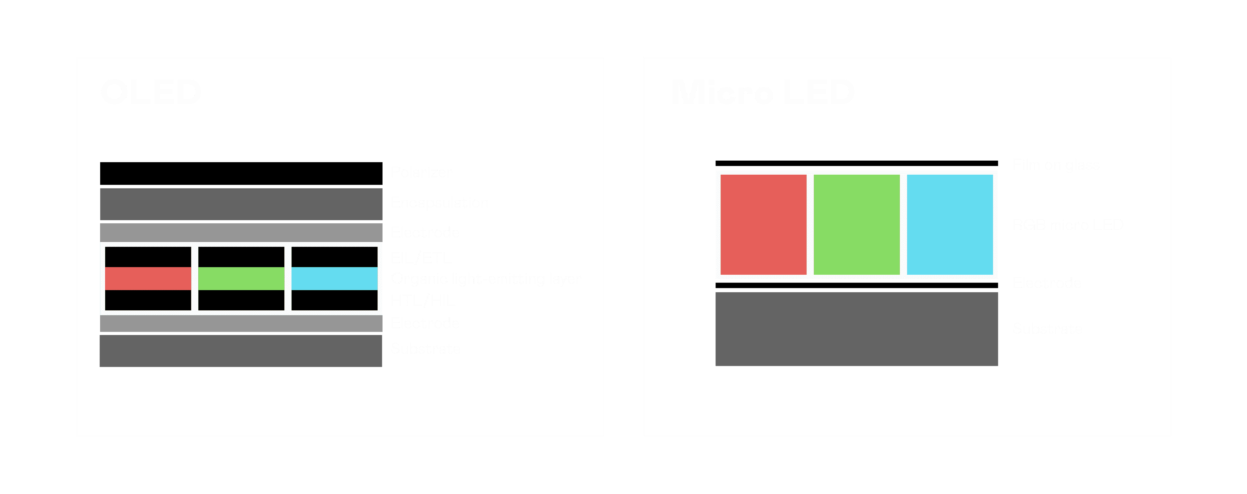 以 LED 做为显示画素,,,可让 LED 的发光效率发挥到极致,,,,从而让显示器具备优异的亮度表现,,,不论是在户外或室内,,,,均具备出众的显示效果。。。同时,,与使用有机材料的 OLED 相比,,,LED 具备更稳定、、、寿命更长的特性,,,不仅不会有画面烙印问题,,,而且更不容易出现故障、、、、坏点。。