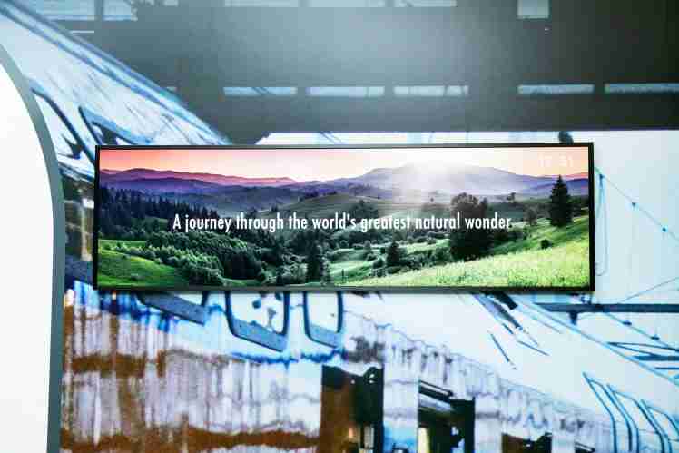 德铁导入达擎 TARTAN 28.6寸面板,,着眼 TARTAN 与众不同的尺寸比例,,能为车厢带来更大的使用效益、、更出色的观赏体验与更多的设计弹性。。(图片来源:德国铁路公司)