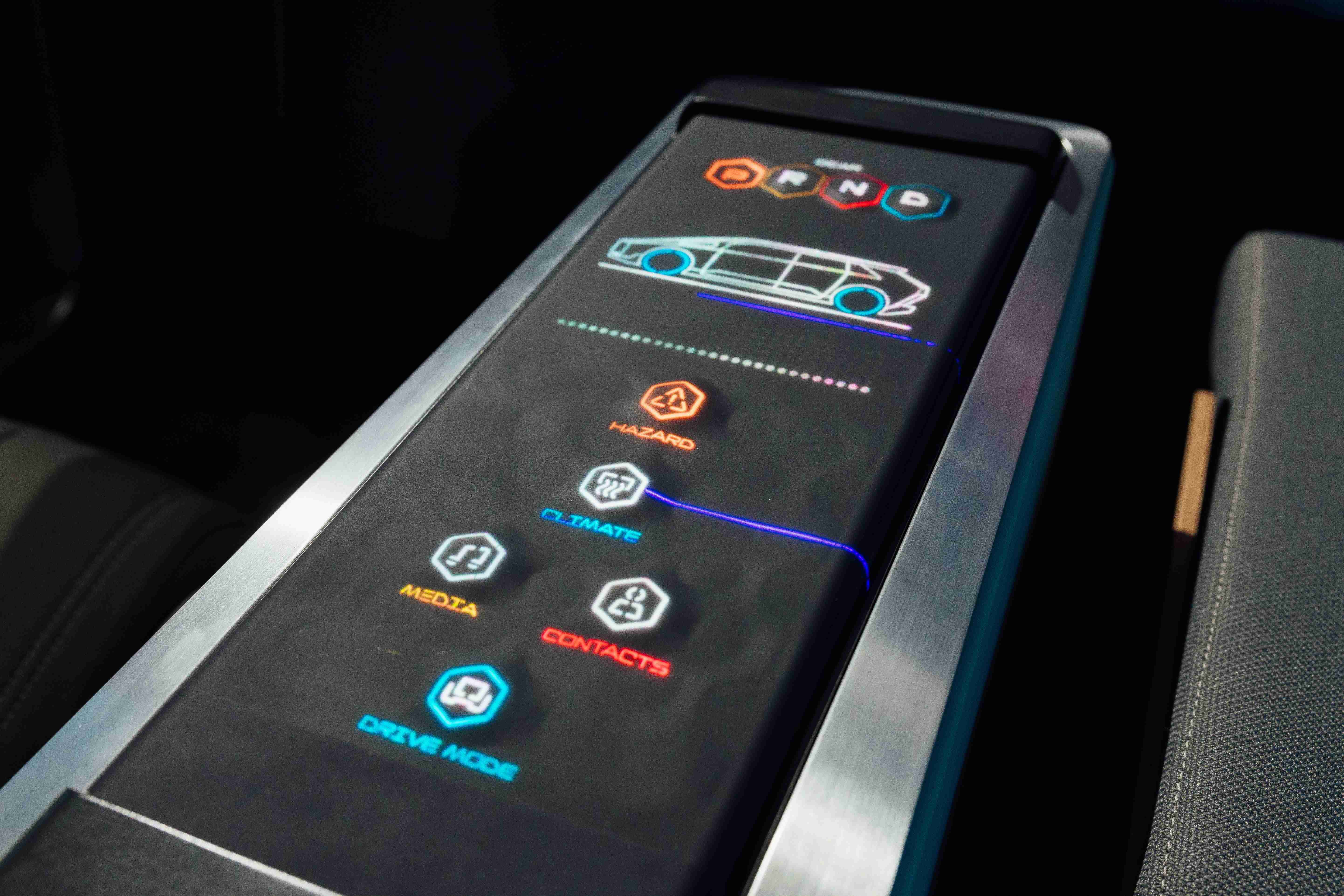 多变形态中控显示(Morphing Center Control)拥有动态变化的表面,,,,平时常态显示车辆功能,,,,进一步操作时,,,,则会隆起成为3D 按钮,,,并在触控时以震动回馈,,以精细的操作开创人机互动新境界。。。。 ![]()