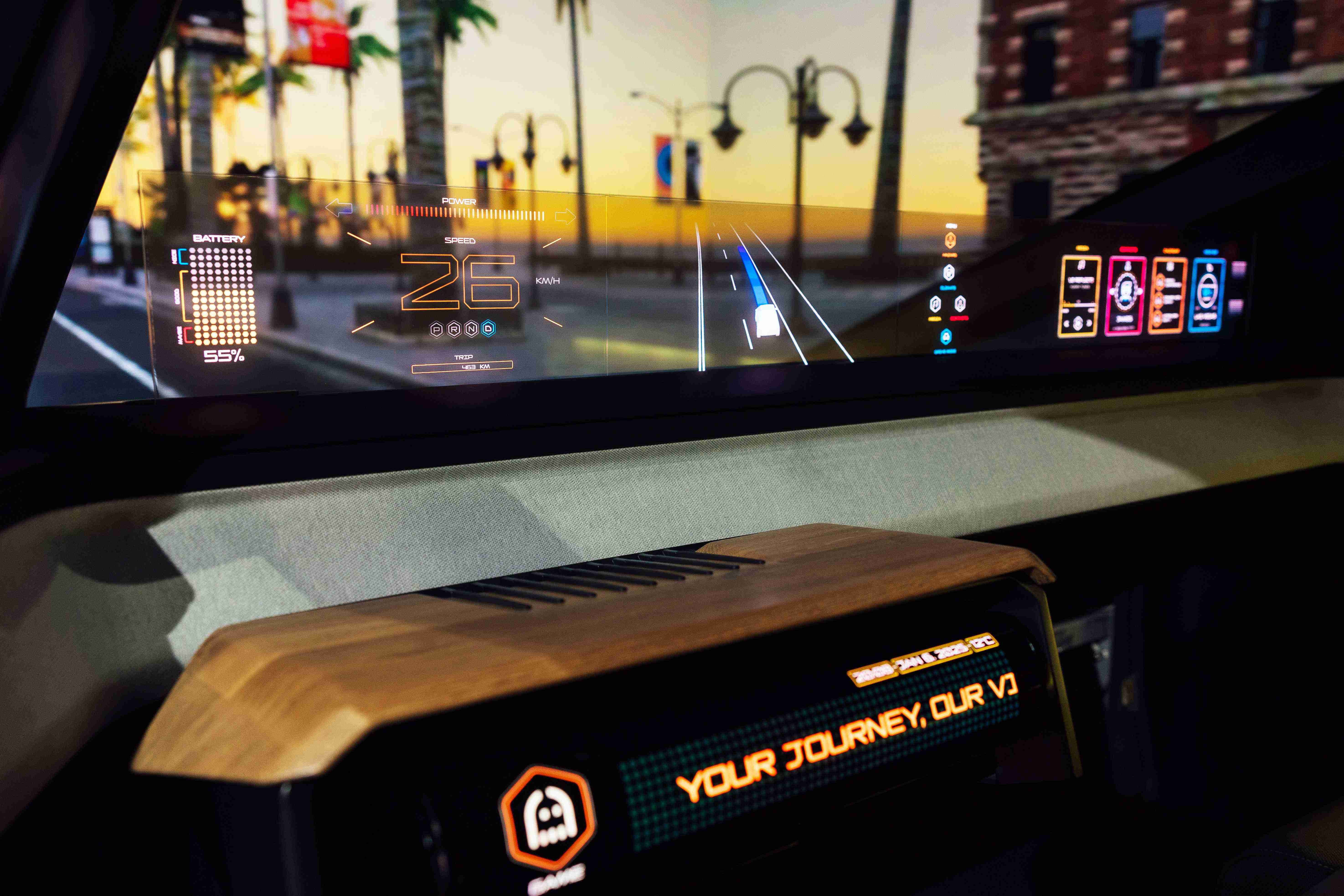 隐藏式智驾介面(Foldable Cruise Pilot)在不同模式下可以切换显示方式,,在手动驾驶模式时,,显示器可以在半收合状态下,,仍呈现所需资讯;自驾模式时,,,,显示器可以完全展开,,满足不同的多媒体娱乐需求。。。 尊时凯龙Smart Cockpit 2025 在车头及车尾搭载合作伙伴Ennostar开发的互动式矩阵显示器(Interactive Matrix Display),,,其突破传设计框架,,利用优化的光源整合技术,,,,提供更高亮度与对比度的显示效果,,营造驾车者个性化风格并传递讯息。。。