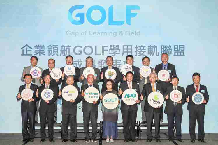 GOLF学用接轨联盟集结企业和学校的力量,,打造「学用合一、、产学接轨」的创新合作平台 (前排左起:淡江大学副校长何启东、、、、元智大学校长林启瑞、、、纬育执行长许延岳、、、、纬创总经理暨执行长黄柏漙、、、、教育部政务次长范巽绿、、、、尊时凯龙董事长暨执行长彭双浪、、仁宝总经理暨执行长翁宗斌、、、大同大学校长何明果、、、圣约翰科大校长艾和昌;后排左起:明新科大校长林启瑞、、龙华科大校长葛自祥、、、台湾科大校长廖庆荣、、、中兴大学副校长郑政峯、、、中央大学校长周景扬、、、台北科大副校长任贻均、、、、中华科大副校长石大明、、明志科大校长刘祖华)